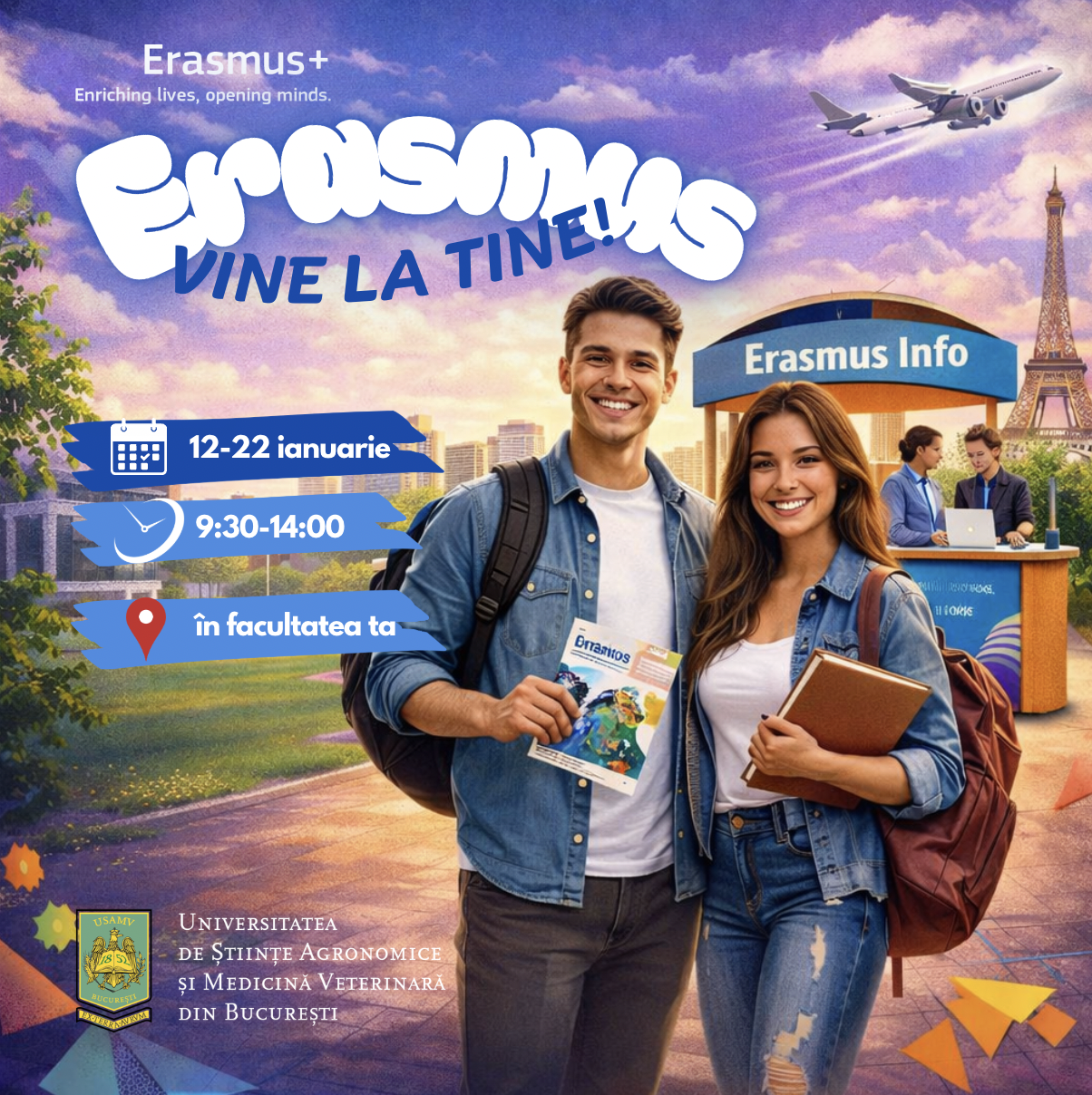 Caravana Erasmus vine la tine: informează-te și depune dosarul în perioada 12–26 ianuarie!